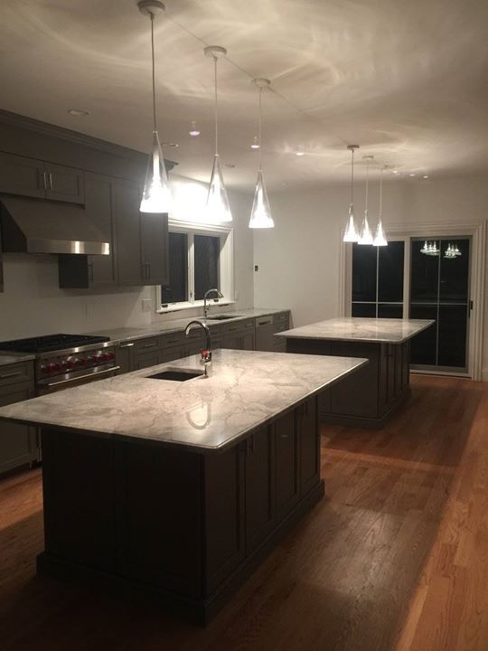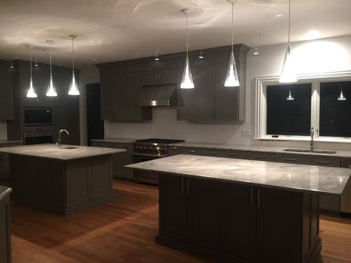 Tedd Wood Luxury Line Custom Cabinetry, Hill Crest Door style Painted Ash Gray. Super White Quartzite counte tops. Construcion by C Stumpo Development