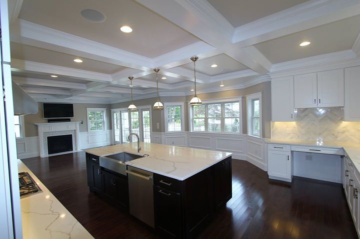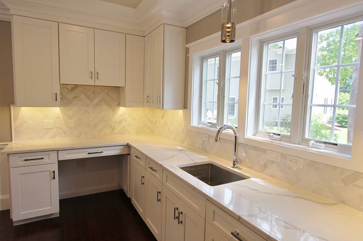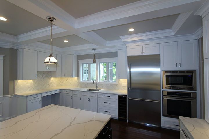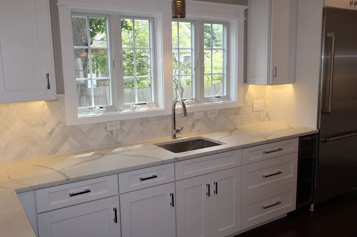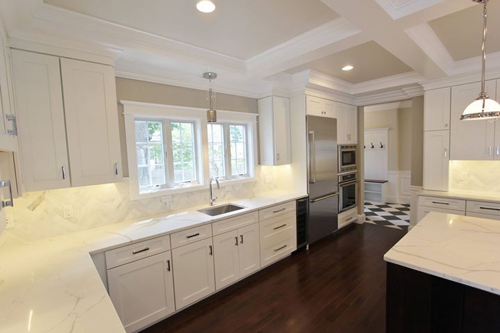 Waypoint Living Spaces, 650F Linen White perimeter Cherry Java, With Quartz Calcutta tops. Constructin by Dreamline Modular Homes