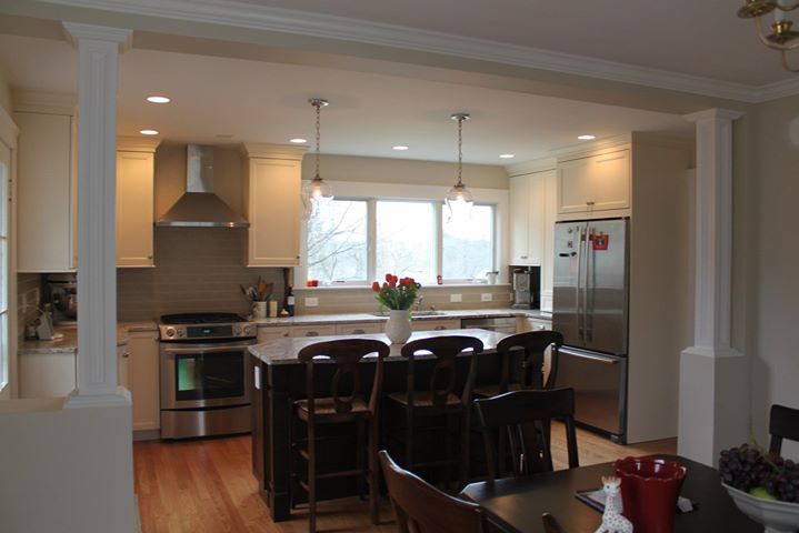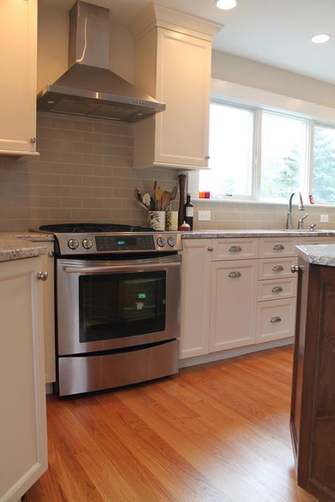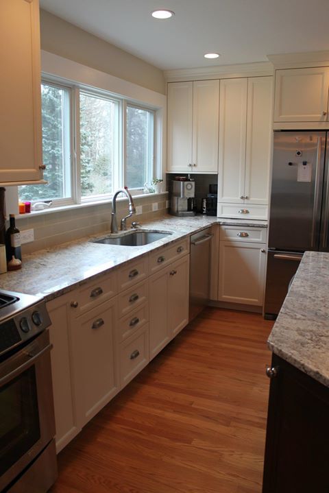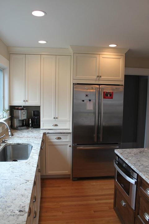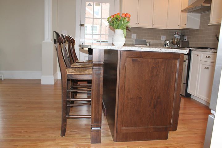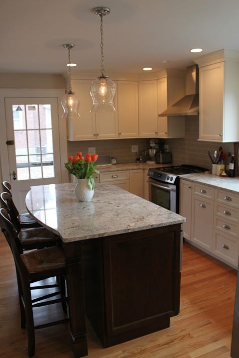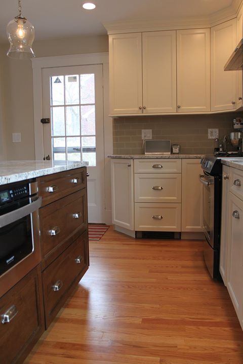 Tedd Wood Luxury Line cabinetry, Custom CRP 10 Door Style, with Dover white paint on perimeter, Chocolate stain Maple on Island. Granite counter tops, White spring color. Remodeling by Sergio's Renovations